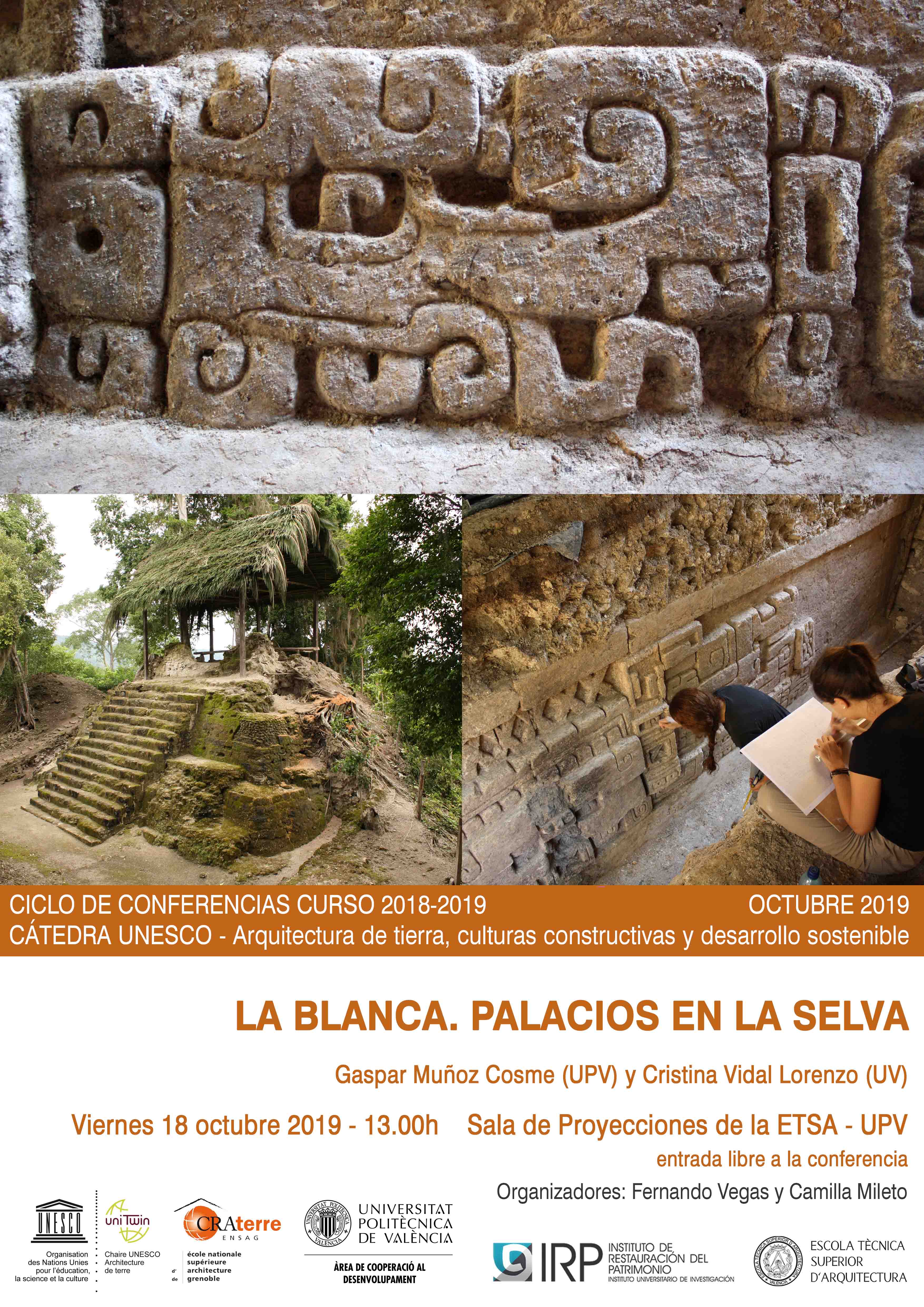 The conference’s title is “La Blanca. Palacios en la Selva ” by Gaspar Muñoz Cosme y Cristina Vidal Lorenzo. It will take place on Friday October 18th 2019, at 13:00h, in the Sala de Proyecciones of the Escuela Técnica Superior de Arquitectura – Universitat Politècnica de València.