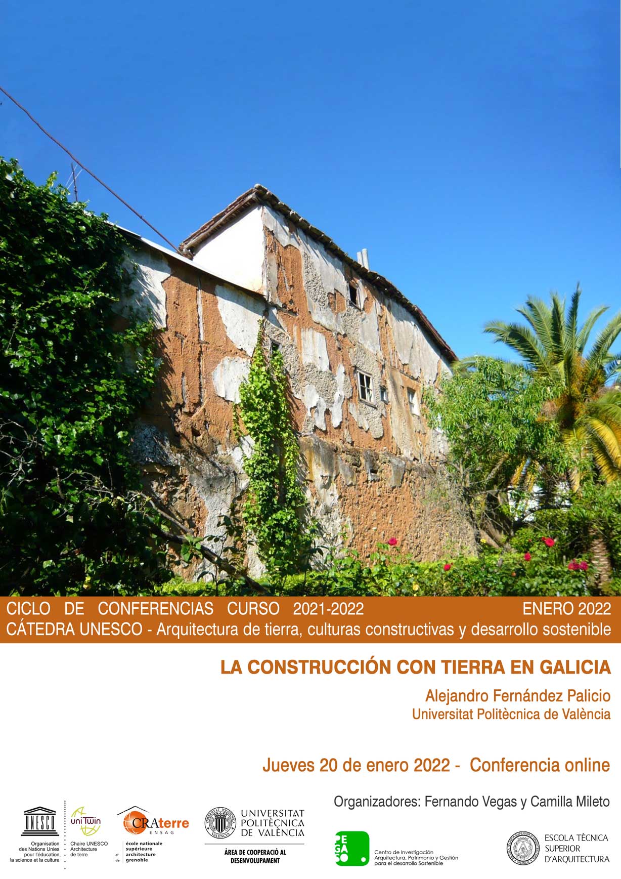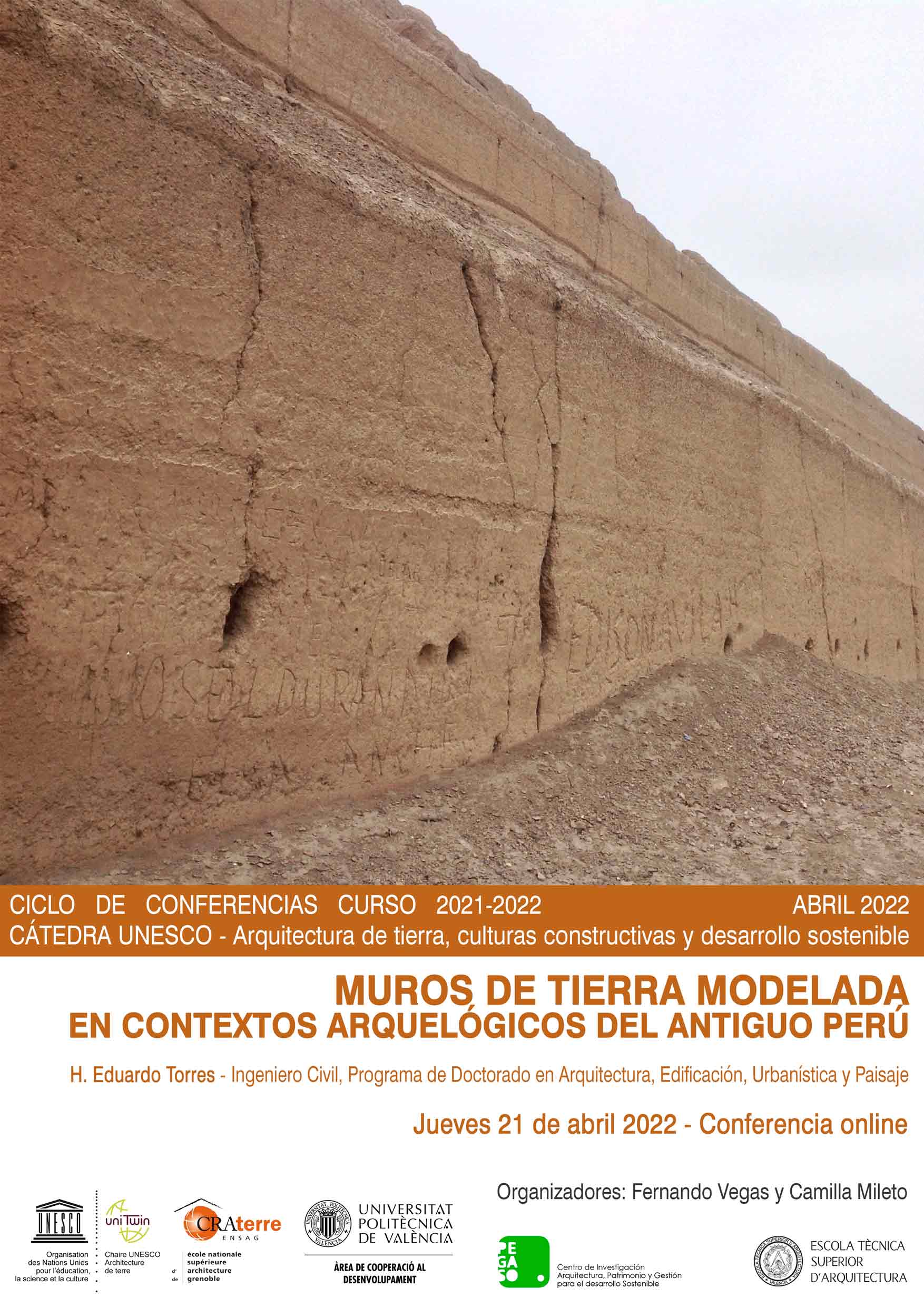 Desde la Cátedra UNESCO de Arquitectura de tierra, culturas constructivas y desarrollo sostenible os enviamos la información de nuestra próxima conferencia. Igual que las anteriores, estará disponible próximamente en nuestro Canal de Youtube.